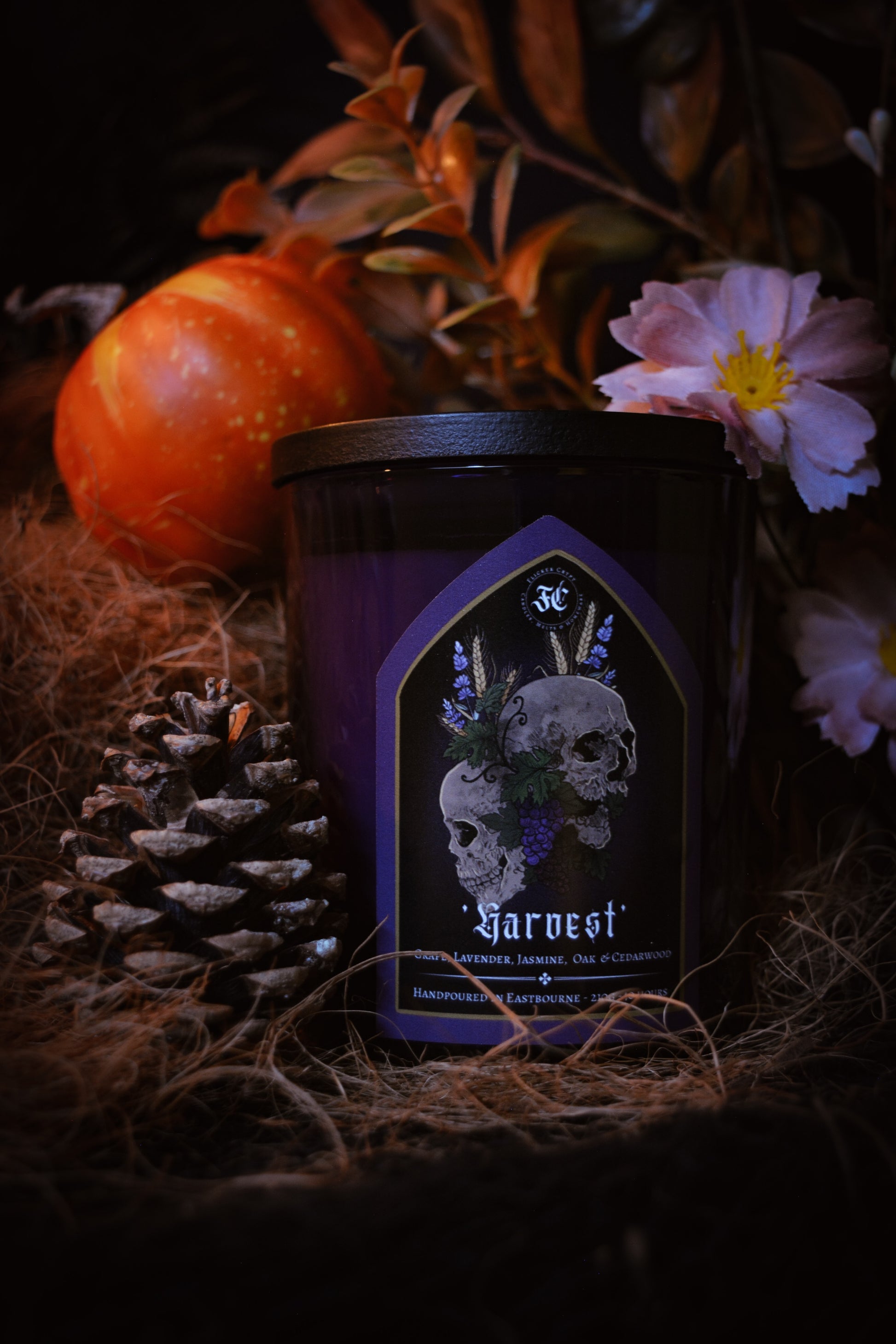 As you light 'Harvest', you'll be greeted by the inviting aroma of ripe grape, creating a fruity and sweet top note that instantly warms your surroundings. The subtle hint of bergamot adds a citrusy twist, reminiscent of a crisp autumn breeze.