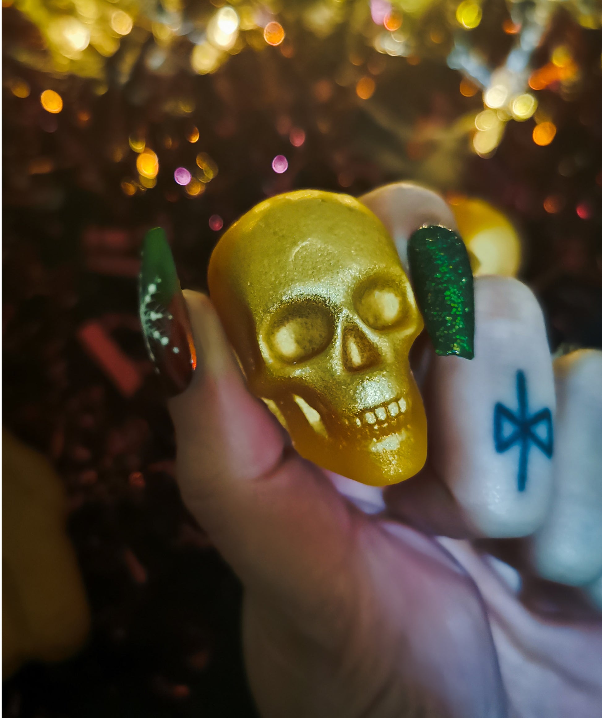 The same as our ‘Krampus’ candle, but in skull wax melt form! With naughty notes of ginger, cinnamon, vanilla and sugary biscuit - these melts will fill your home with the smell of freshly baked gingerbread.