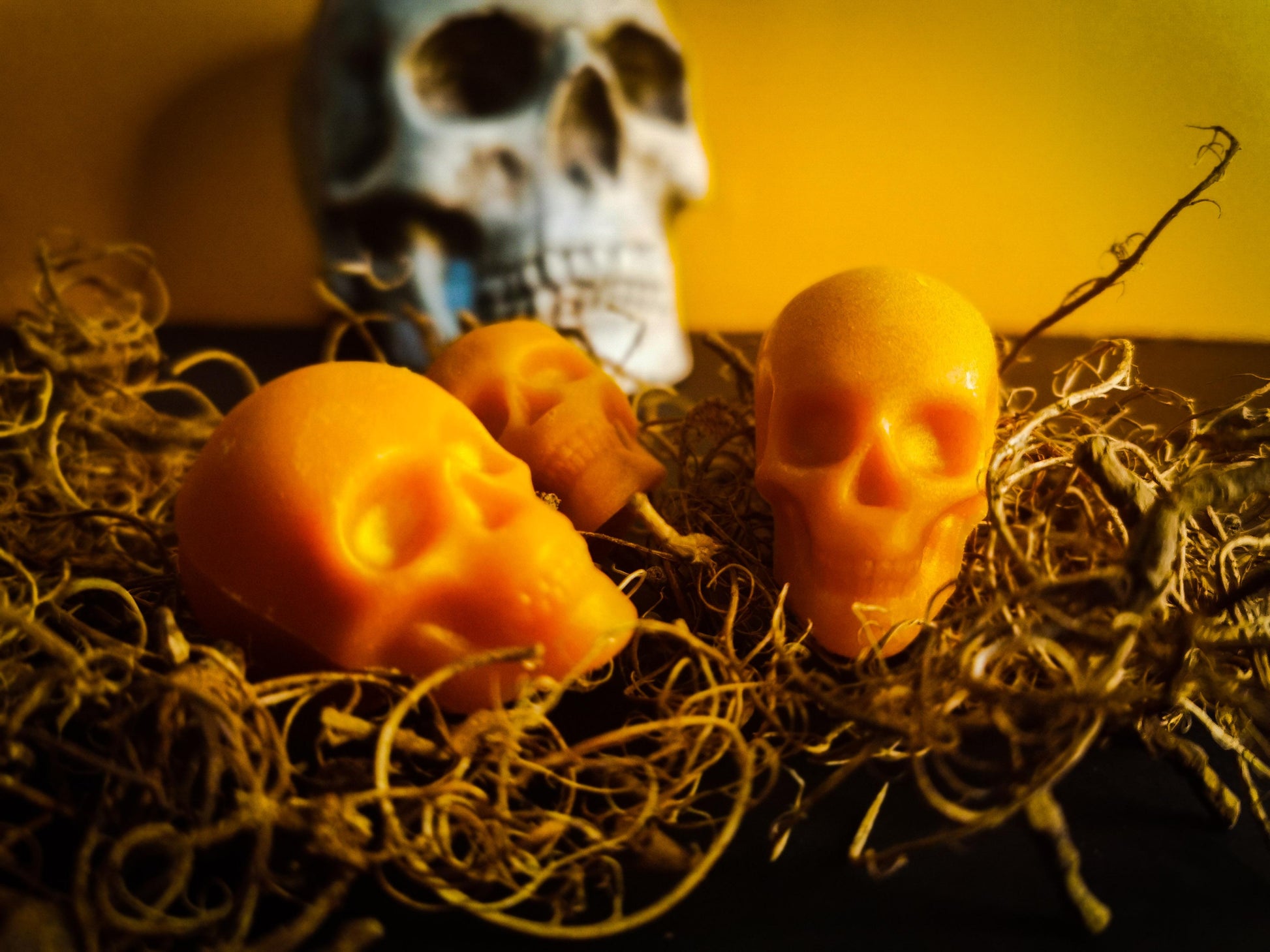 Enjoy your favourite Halloween fragrance in the form of a skull wax melt…